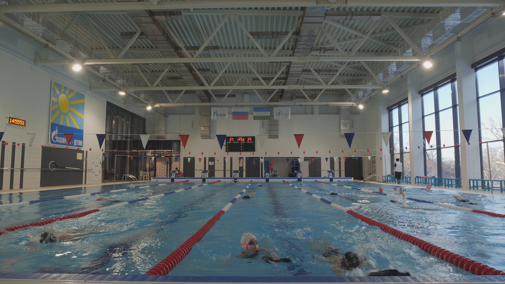 Заведующий бассейном рассказывает о масштабах: посещаемость растёт, в месяц она доходит до 9000 человек.