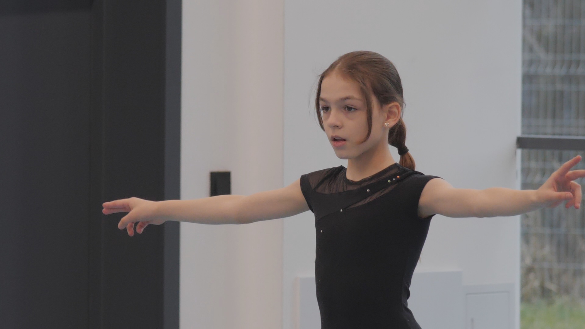 Ксения Невалёнова, воспитанница отделения фигурного катания: «Мы сначала разминаемся и в конце начинаем катать. Катаем, потому что нам надо ездить на соревнования. Да, я сама попросилась. Я говорила папе, что я хочу на фигурное катание. Он говорил, может быть, на другой спорт, может быть, на другой спорт. И всё-таки я его уговорила».