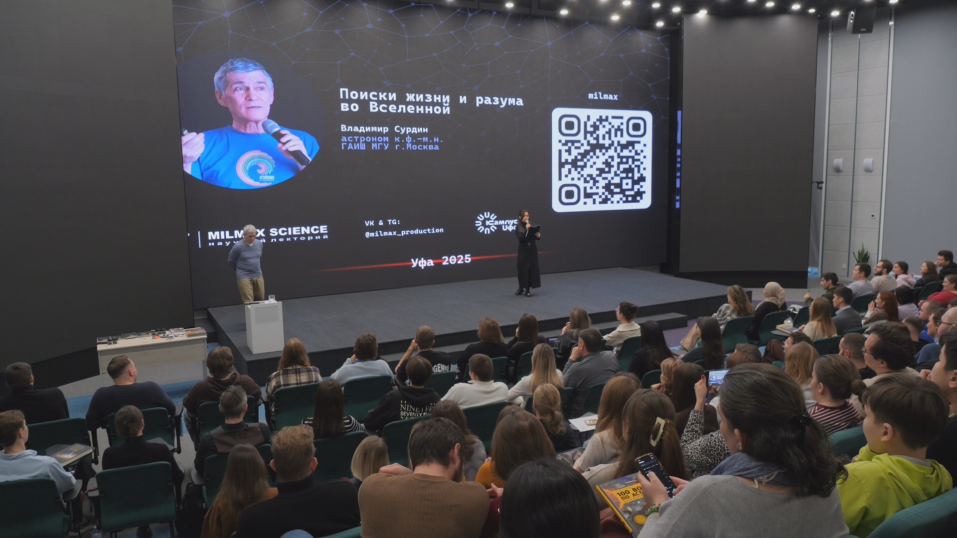 Лекция Сурдина прошла в уфимском Межвузовском кампусе. Ее организаторы – Научный лекторий Milmax Science. Встреча с астрономом завершала Месяц науки и была посвящена главному вопросу космоса – одни ли мы во Вселенной?